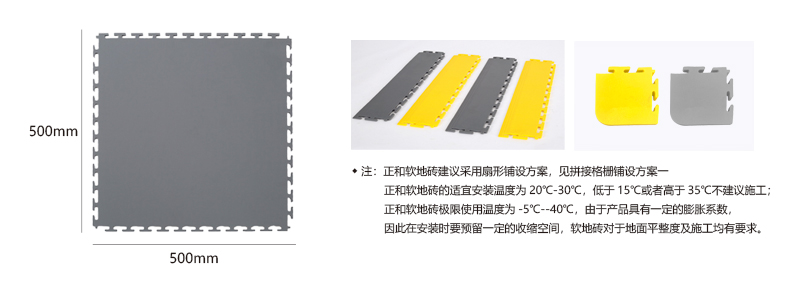 軟質(zhì)絕緣地板能將每個(gè)獨(dú)立的地板快速拼裝成整體地面,專(zhuān)利型鎖扣結(jié)構(gòu)連接能力更強(qiáng),可承受叉車(chē)的來(lái)回碾壓。施工過(guò)程中無(wú)需膠黏劑等材質(zhì),具有施工簡(jiǎn)單快速、色彩絢麗、美觀大方、可移動(dòng)性強(qiáng)、可重復(fù)使用等特點(diǎn)。